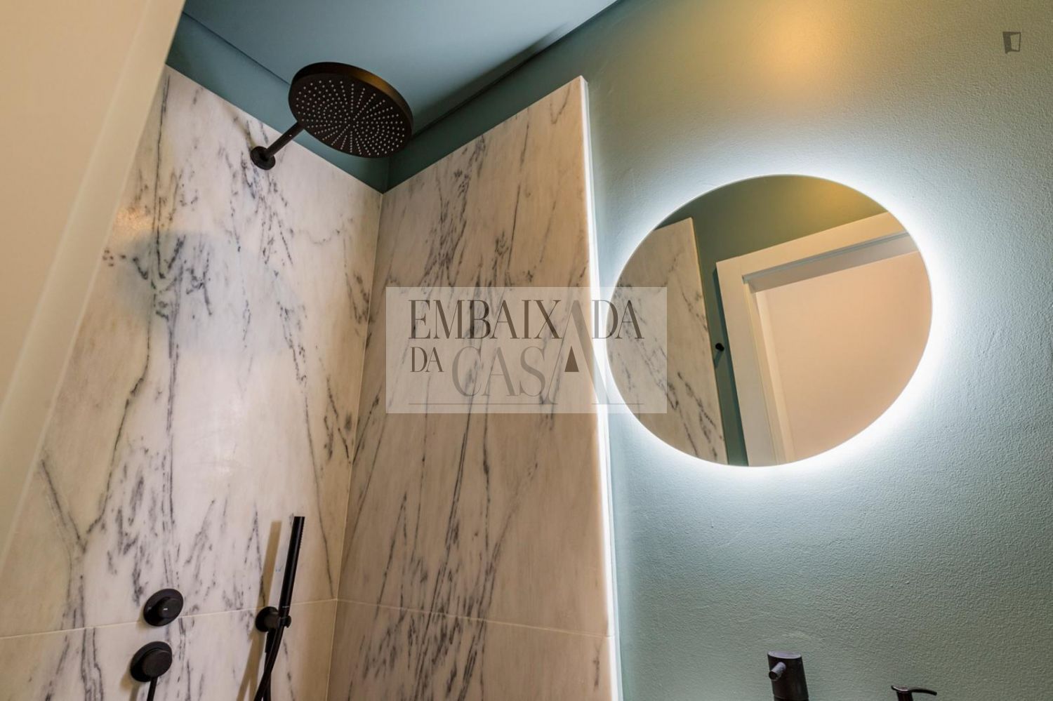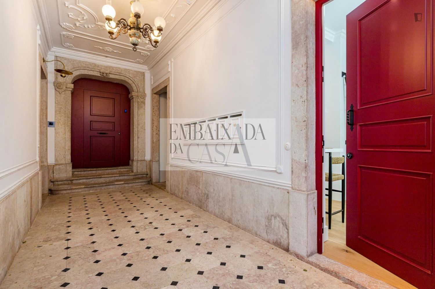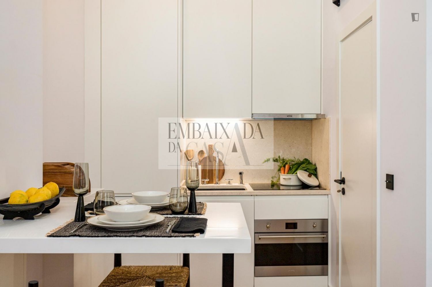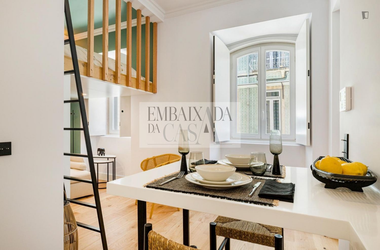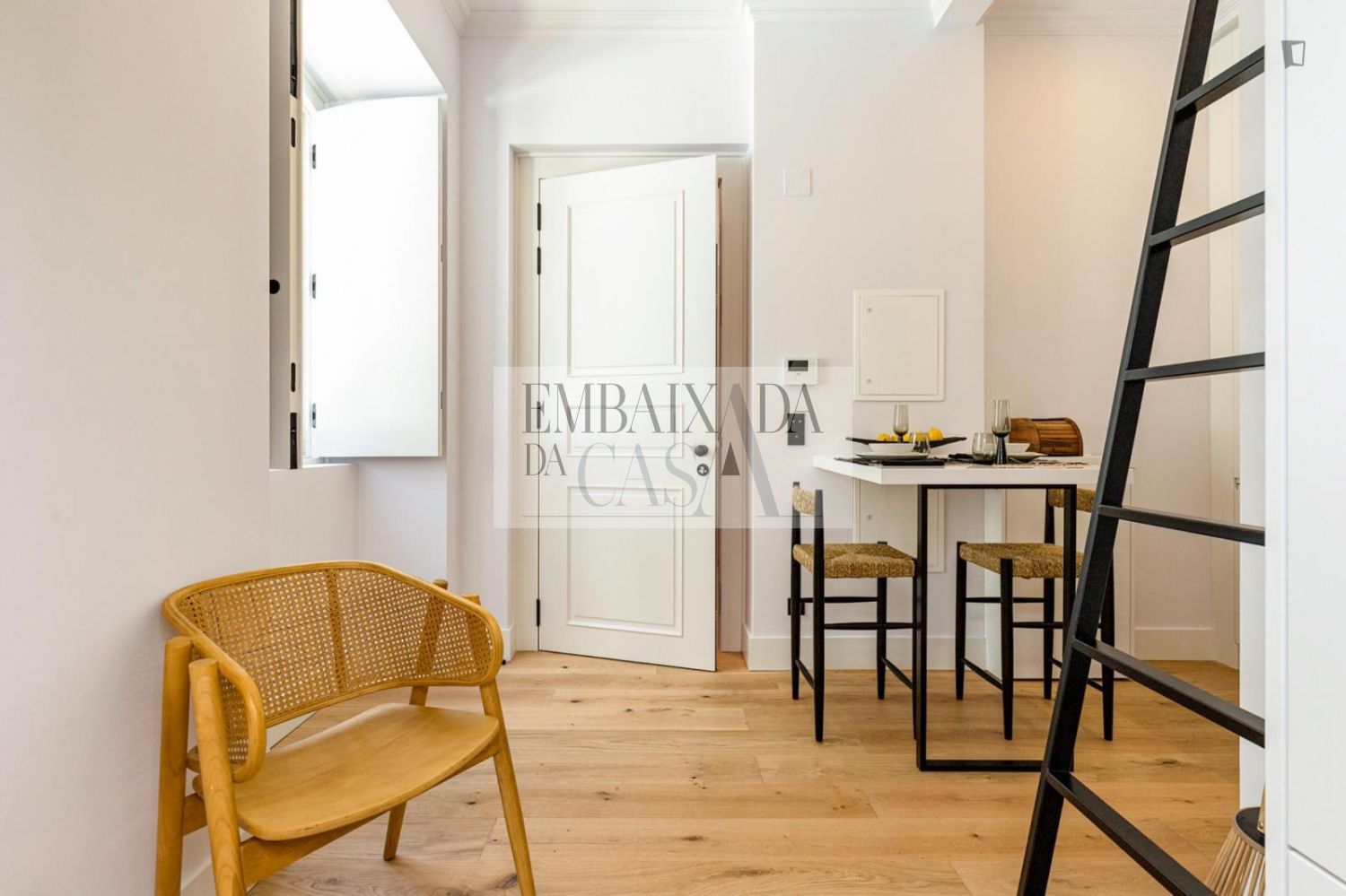 EMBAIXADA DA CASA | Apresenta charmoso estúdio com mobilias em condomínio de topo no Príncipe Real, Lisboa. Situado no coração do Príncipe Real, uma zona premium de Lisboa, este extraordinário estúdio representa uma fusão entre o charme da arquitetura clássica e o conforto do design contemporâneo. Ao entrar no apartamento, vemos uma inteligente gestão arquitectónica do espaço. O quarto é icónico: em mezzanine. A cozinha está equipada com eletrodomésticos topo de gama (smeg). A fachada do edifício é irresistível para o Instagram, com os seus valiosos azulejos compostos por ananases invertidos (homenagem a um ótimo relacionamento comercial com o Brasil). O hall de entrada com o chão de pedra Lioz e o seu lustre ornamentado é sinónimo da exclusividade do “Jasmim11” - um antigo palacete setecentista, totalmente renovado em 2023 com materiais de excelência. Oferta de uma limpeza profissional ------------------------- EMBAIXADA DA CASA | Presents a charming studio with furniture in a hight end condominium in Príncipe Real, Lisbon. Located in the heart of Príncipe Real, a premium area of Lisbon, this extraordinary studio represents a fusion of the charm of classical architecture with the comfort of contemporary design. Upon entering the apartment, we are met with clever architectural management of the space. The bedroom is iconic: on a mezzanine level. The kitchen is equipped with state-of-the-art appliances (SMEG). The building's facade is irresistible for Instagram, with its precious tiles composed of inverted pineapples (a tribute to a strong business relationship with Brazil). The entrance hall with Lioz stone flooring and its ornate chandelier are synonymous with the exclusivity of "Jasmim11" - a former 18th-century mansion, completely renovated in 2023 with top-quality materials. Offer of a professional cleaning