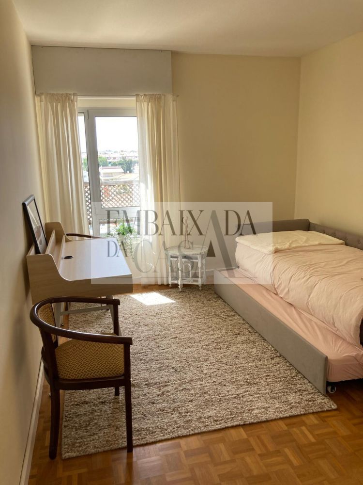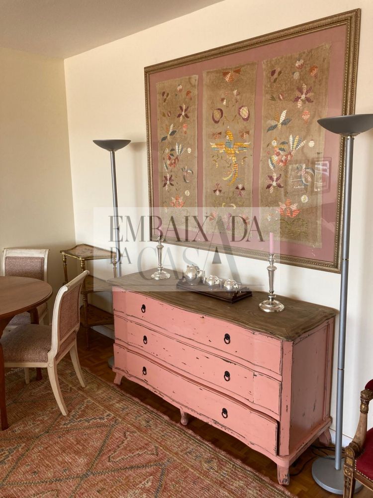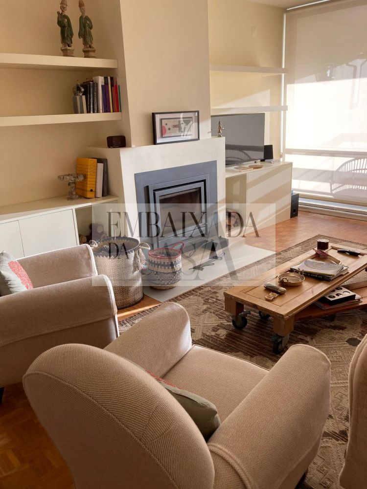 EMBAIXADA DA CASA | Apresenta excelente apartamento T2 com com muita luz natural virado a poente. Com boas áreas, completamente equipado e mobilado, em excelente localização no Bairro do Rosário. Composto por uma Sala de 31m2 com lareira, uma varanda que permite ler um bom livro ao final da tarde ou desfrutar de um copo de vinho. Com dois quartos, um deles em suite com closet, o outro com roupeiro, servido por uma casa de banho que também serve a zona social. Cozinha ampla totalmente equipada onde dispõe de uma mesa de refeições. Prédio com 2 elevadores, segurança e zona envolvente c/ optimos espaços verdes dentro do condomínio. Lugar de garagem. O Bairro do Rosário é um dos melhores bairros de Cascais, com comércio, serviços, transportes e com fácil acesso à autoestrada. Permite caminhar até ao mar ou até ao centro, permite fazer compras de proximidade, disfrutar do Sol numa esplanada, sendo simultaneamente uma zona tranquila e com vida. Viva Cascais em pleno Embaixada da Casa | Presents an excellent 2 bedroom apartment with amazing natural light, facing west. Fully equipped and furnished, in an excellent location in Bairro do Rosário. Comprising a 31m2 room with fireplace, a balcony that allows you to read a good book in the late afternoon or enjoy a glass of wine. With two bedrooms, one suite with closet and the other with wardrobe, served by a bathroom that also serves the social area. Large fully equipped kitchen with a dining table. Building with 2 elevators, security and surrounding area with great green spaces within the condominium. Parking space. Bairro do Rosário is one of the best neighborhoods in Cascais, with shops, services, transport and easy access to the highway. Allows you to walk to the sea or to the center, allows you to shop nearby, enjoy the sun on a terrace, while being a quiet and lively area. Live Cascais to the fullest