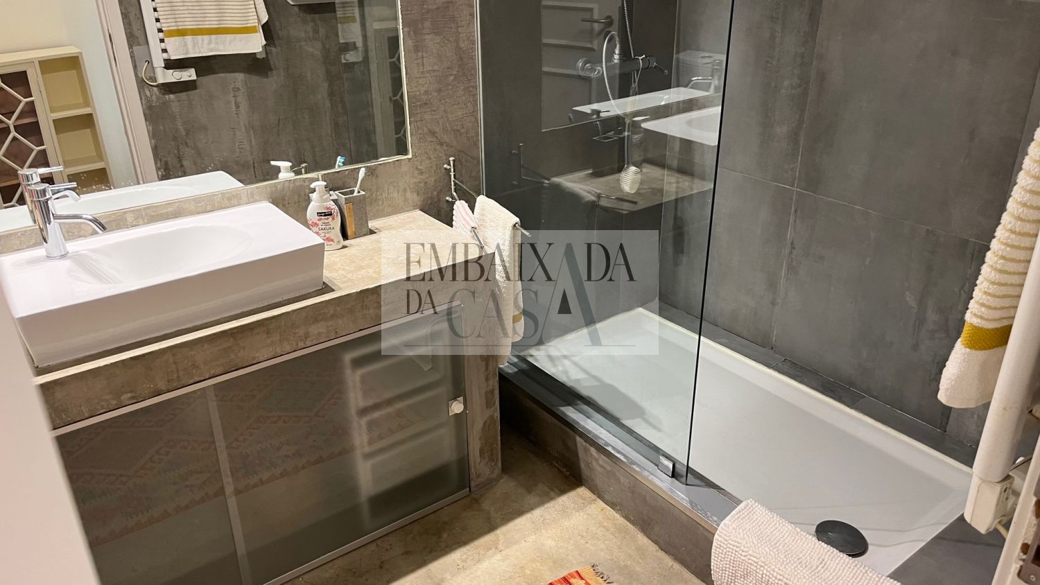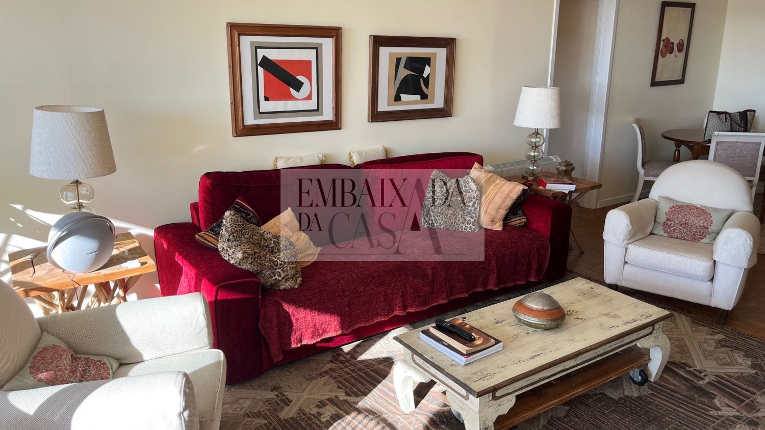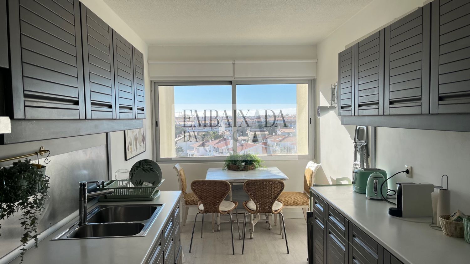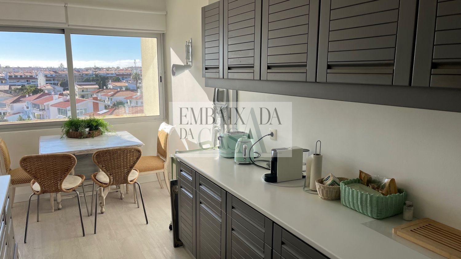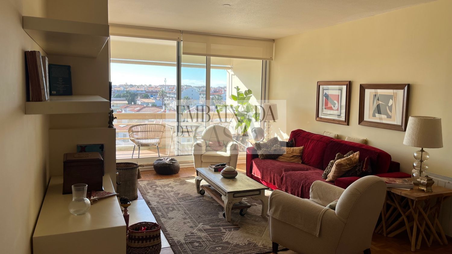EMBAIXADA DA CASA | Apresenta excelente apartamento T2 com com muita luz natural virado a poente. Com boas áreas, completamente equipado e mobilado, em excelente localização no Bairro do Rosário. Composto por uma Sala de 31m2 com lareira, uma varanda que permite ler um bom livro ao final da tarde ou desfrutar de um copo de vinho. Com dois quartos, um deles em suite com closet, o outro com roupeiro, servido por uma casa de banho que também serve a zona social. Cozinha ampla totalmente equipada onde dispõe de uma mesa de refeições. Prédio com 2 elevadores, segurança e zona envolvente c/ optimos espaços verdes dentro do condomínio. Lugar de garagem. O Bairro do Rosário é um dos melhores bairros de Cascais, com comércio, serviços, transportes e com fácil acesso à autoestrada. Permite caminhar até ao mar ou até ao centro, permite fazer compras de proximidade, disfrutar do Sol numa esplanada, sendo simultaneamente uma zona tranquila e com vida. Viva Cascais em pleno Embaixada da Casa | Presents an excellent 2 bedroom apartment with amazing natural light, facing west. Fully equipped and furnished, in an excellent location in Bairro do Rosário. Comprising a 31m2 room with fireplace, a balcony that allows you to read a good book in the late afternoon or enjoy a glass of wine. With two bedrooms, one suite with closet and the other with wardrobe, served by a bathroom that also serves the social area. Large fully equipped kitchen with a dining table. Building with 2 elevators, security and surrounding area with great green spaces within the condominium. Parking space. Bairro do Rosário is one of the best neighborhoods in Cascais, with shops, services, transport and easy access to the highway. Allows you to walk to the sea or to the center, allows you to shop nearby, enjoy the sun on a terrace, while being a quiet and lively area. Live Cascais to the fullest