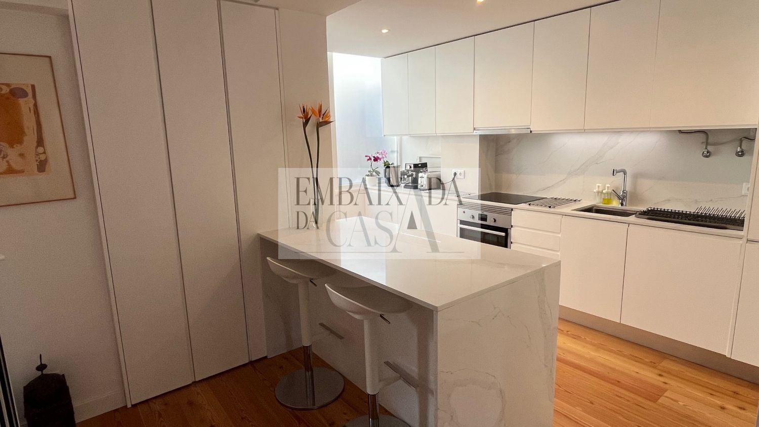 EMBAIXADA DA CASA | Apresenta T2 com terraço, varanda e lugar de garagem na zona da Av. Roma É um excelente T2 cheio de luz natural, recentemente alvo de uma remodelação total, com um generoso terraço de cerca de 60 m2 ligado à sala e cozinha e uma ampla varanda ligada aos 2 quartos. Dispõe de 2 casas de banho, uma social e outra associada ao quarto maior (suite) que dispõe também de uma zona de closet. Ambos os quartos têm acesso a uma simpática e solarenga varanda. A sala de boa dimensão está ligada à cozinha, completamente equipada, beneficiando ambas de um fantástico terraço com um toldo que ajuda a ter privacidade e sombra. O prédio é recente, 1982, está muito bem mantido e é servido por 2 elevadores. Dispõe ainda de uma útil garagem com lugar de parqueamento e fácil acesso. Alvalade é um dos bairros mais emblemáticos, residenciais e funcionais de Lisboa, caracterizando-se por ser uma "cidade dentro da cidade" que combina tradição, comércio local vibrante e uma forte componente de serviços. Fica numa zona nobre de Lisboa, com excelentes ligações de transportes, incluindo várias estações de metro (Alvalade, Campo Grande, Entrecampos), autocarros e comboio. Conhecido pela sua atmosfera familiar e tradicional, com destaque para a Avenida da Igreja e a Avenida de Roma, que oferecem um comércio de rua muito dinâmico. O Mercado de Alvalade é um ponto de referência para produtos frescos. O bairro, com raízes nos anos 40/50, é caracterizado por edifícios de média altura (frequentemente sem elevador, mas com apartamentos grandes) e um traçado planeado com bastante espaço, incluindo zonas arborizadas. --------------- EMBAIXADA DA CASA | Presents a 2 bedrooms apartment with terrace, balcony and parking space in the Av. Roma area This is an excellent 2-bedroom apartment full of natural light, recently completely renovated, with a generous terrace of approximately 60 m2 connected to the living room and kitchen, and a large balcony connected to the 2 bedrooms. It has 2 bathrooms, one guest bathroom and another associated with the master bedroom (suite) which also has a walk-in closet. Both bedrooms have access to a pleasant and sunny balcony. The good-sized living room is connected to the fully equipped kitchen, both benefiting from a fantastic terrace with an awning that helps provide privacy and shade. The building is recent, built in 1982, very well maintained and served by 2 elevators. It also has a useful garage with a parking space and easy access. Alvalade is one of Lisbon's most emblematic, residential and functional neighborhoods, characterized as a "city within a city" that combines tradition, vibrant local commerce and a strong service component. Located in a prime area of Lisbon, with excellent transport links, including several metro stations (Alvalade, Campo Grande, Entrecampos), bus and train stations. Known for its family-friendly and traditional atmosphere, especially Avenida da Igreja and Avenida de Roma, which offer a very dynamic street market. The Alvalade Market is a landmark for fresh produce. The neighborhood, with roots in the 1940s/50s, is characterized by mid-rise buildings (often without elevators, but with large apartments) and a planned layout with plenty of space, including wooded areas.