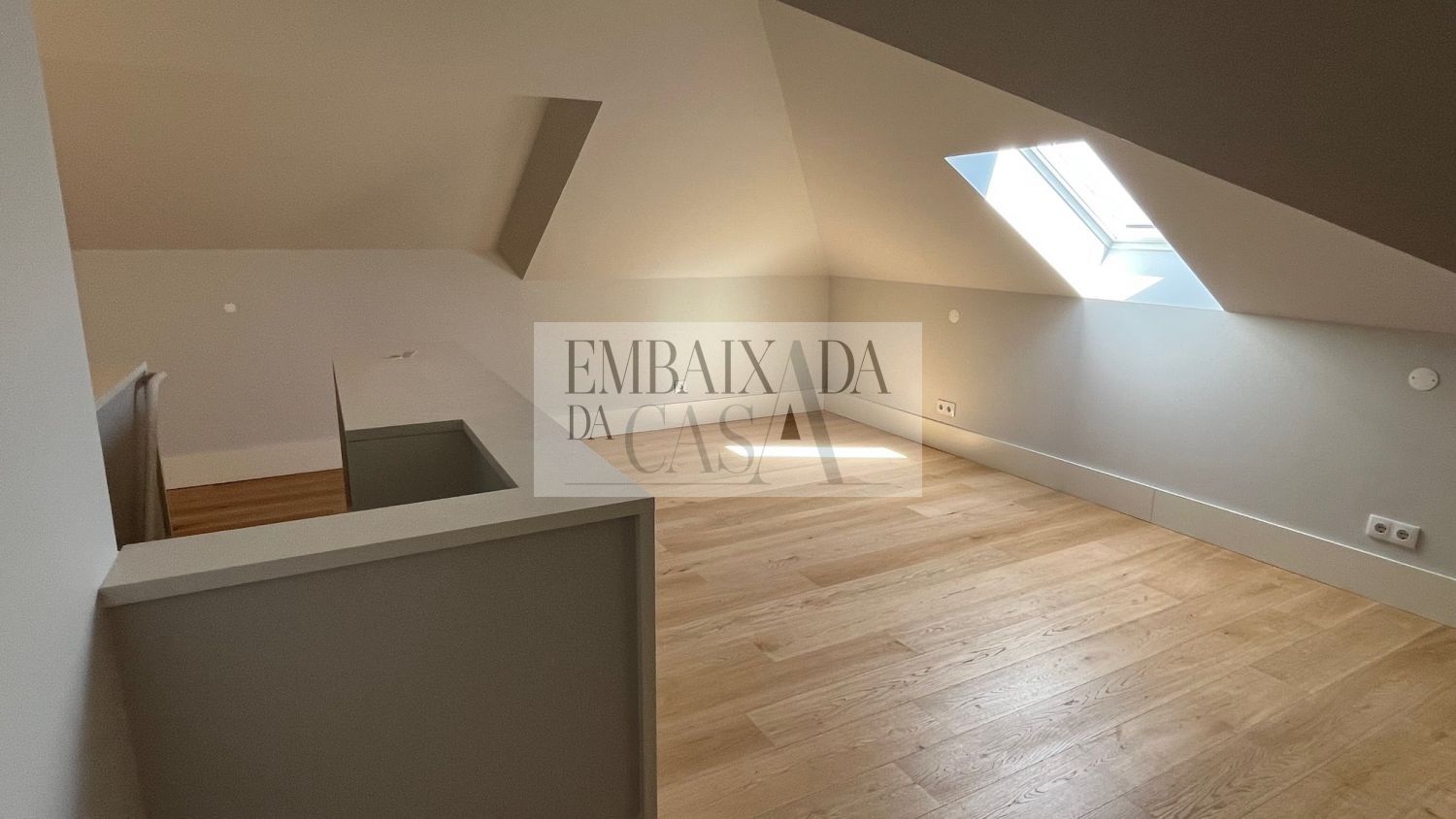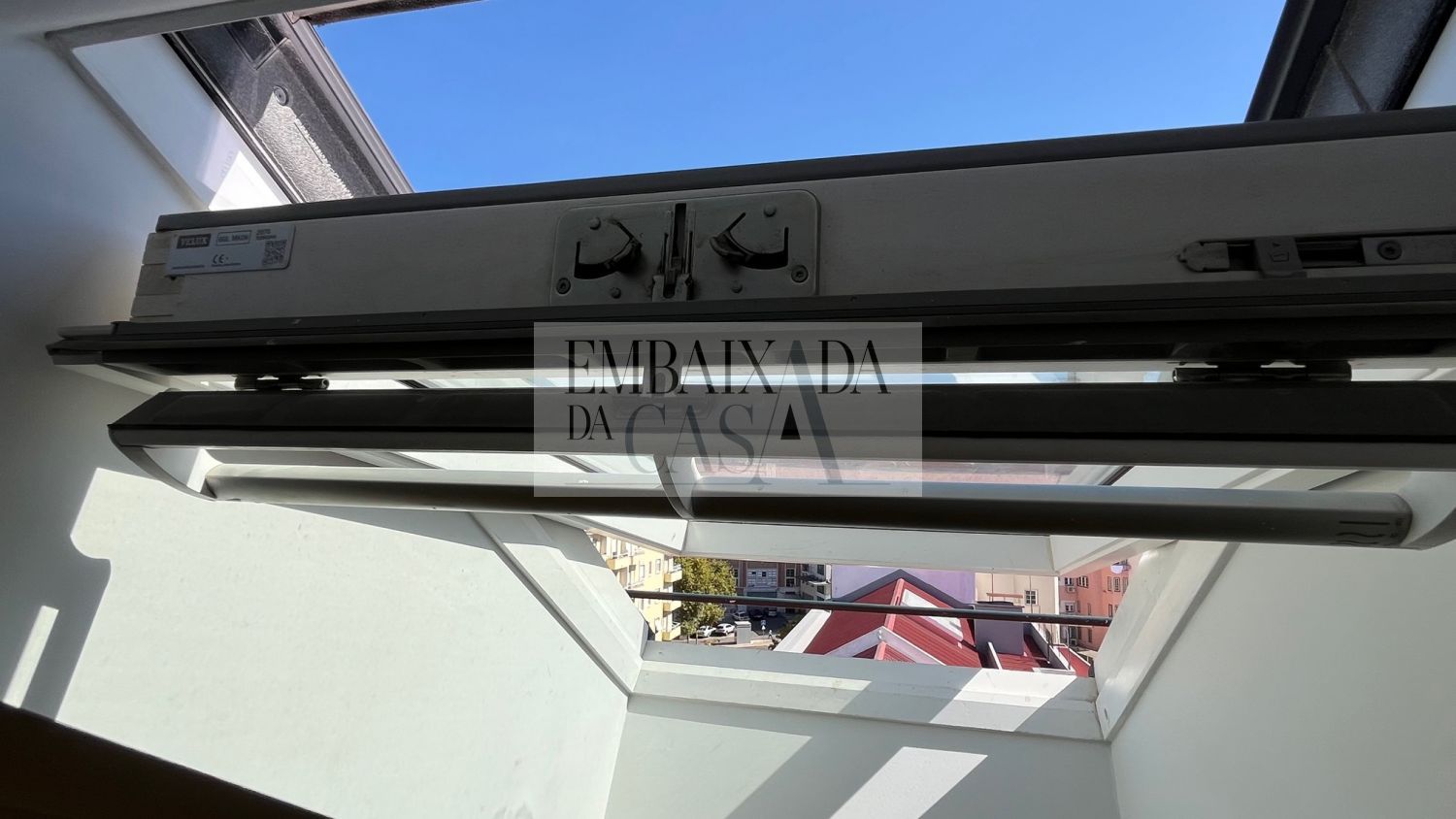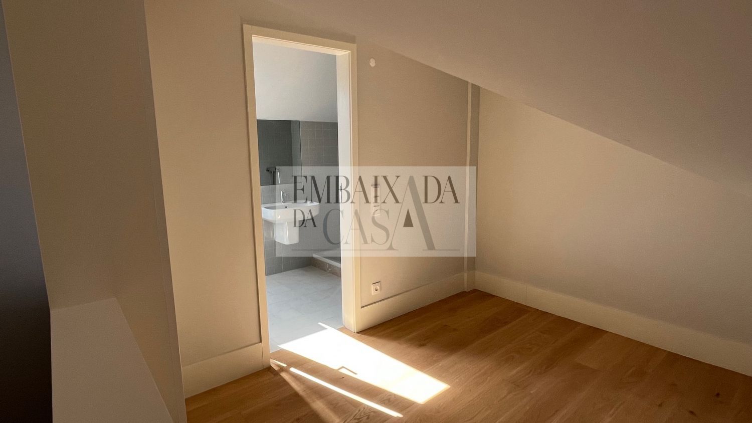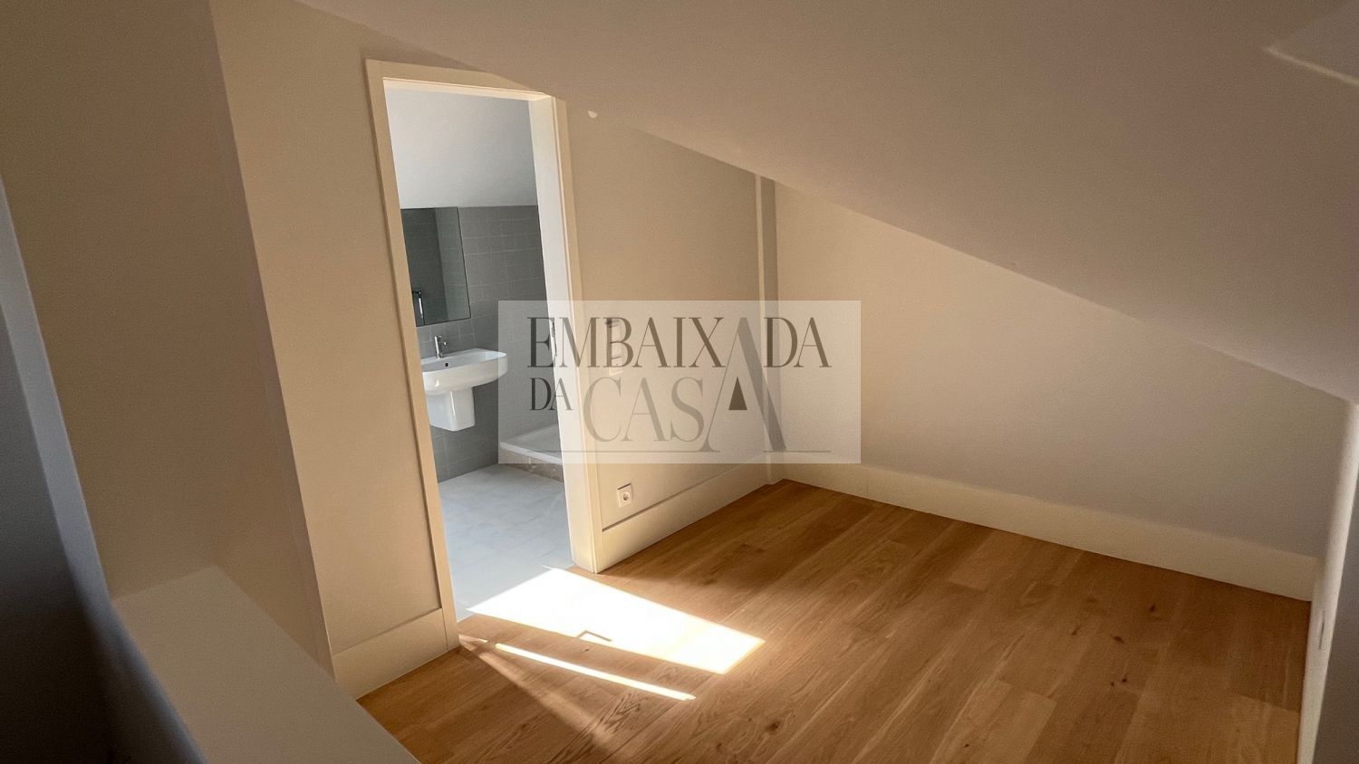 EMBAIXADA DA CASA | Apresenta apartamento T3 duplex no Areeiro, Av. Madrid, com fantástico terraço. Recentemente concluído, resulta da total recuperação (interior e exterior) de um prédio dos anos 50, preservando a sua traça exterior e o glamour das edificações da época. Apartamento duplex constituído por 3 quartos, dois dos quais em suite, um deles no piso superior. Dispõe de sala comum, de uma ampla cozinha e de um total de 3 casas de banho. Tem um generoso terraço com quase 100 m2, com vista fantástica 360 graus e privacidade, não estando muito próximo de nenhum prédio. O prédio tem um total de 5 andares e é servido por 2 elevadores novos, as traseiras dão para uma bonita e verdejante praceta que também é de estacionamento exclusivo para moradores. No piso térreo tem lojas com várias actividades em harmonia com a zona que fervilha com movimento e actividade. O Areeiro caracteriza-se por ser uma zona descontraída com apartamentos vintage em art déco e o popular Jardim Fernando Pessa, com trilhos calcetados que percorrem zonas de descanso florestadas e exibições de filmes ao ar livre no verão. Restaurantes informais, pastelarias e quiosques de gelados servem sobretudo famílias residentes e estudantes, enquanto os passageiros param para beber o café da manhã e cervejas depois do trabalho em redor do movimentado centro de transportes públicos na Estação Roma-Areeiro. ----------------------------- EMBAIXADA DA CASA | Presents 3 bedroom apartment in Areeiro, av. Madrid, with an amazing terrace. Already finished, it is the result of the total recovery (interior and exterior) of a building from the 50s, preserving its exterior design and the glamor of the buildings of the time. Duplex apartment consisting of 3 bedrooms, two of which are en suite, one on the upper floor. It has a common room, a good kitchen and a total of 3 bathrooms. It has a large terrace with almost 100 m2, with fantastic 360 degree views and privacy as it is not close to any building. The building has a total of 5 floors and is served by 2 elevators, the back faces a beautiful and green square that is also an exclusive parking for residents. On the ground floor there are shops with various activities in harmony with the area that buzzes with movement and activity. Areeiro is characterized by being a relaxed area with vintage art deco apartments and the popular Fernando Pessa Garden, with cobbled paths that run through forested rest areas and outdoor film screenings in summer. Casual restaurants, patisseries and ice cream kiosks cater mainly to resident families and students, while passengers stop for breakfast and beers after work around the busy public transport hub at Roma-Areeiro Station. The photographs are 3d projections of this project, illustrative of various fractions and typologies, not necessarily of this fraction.