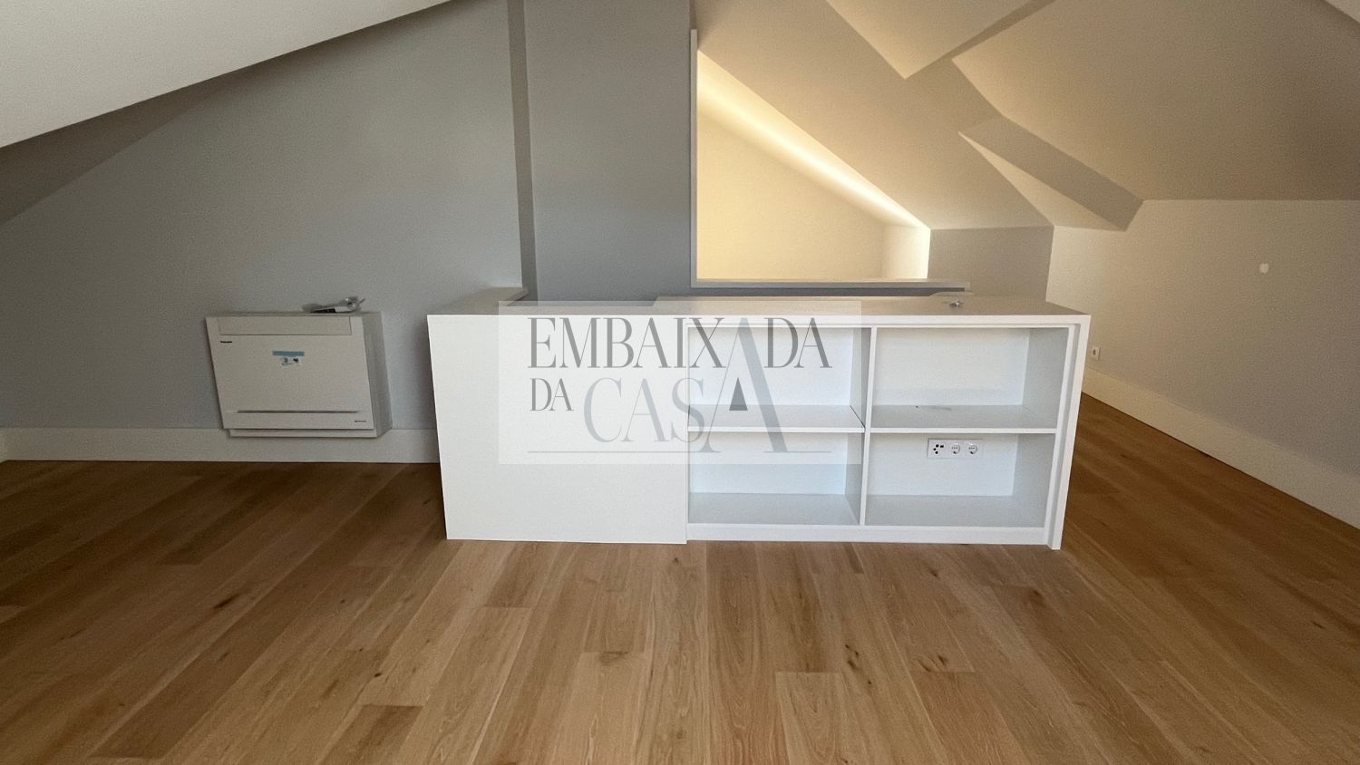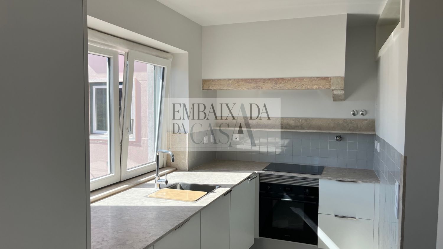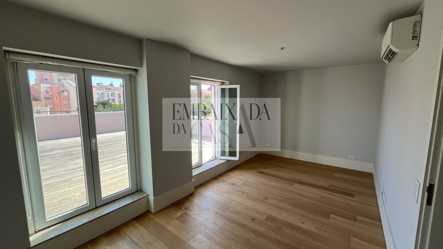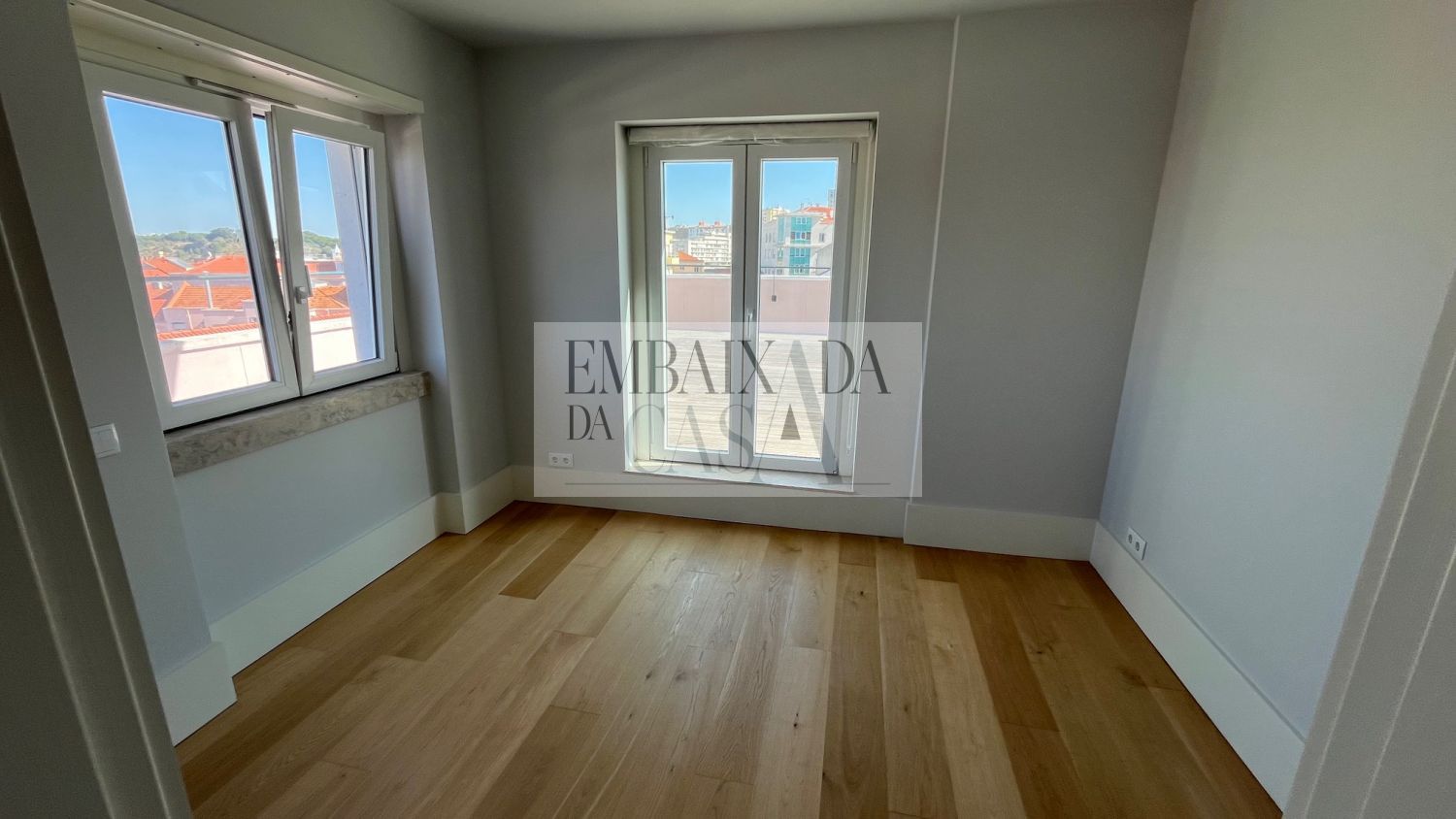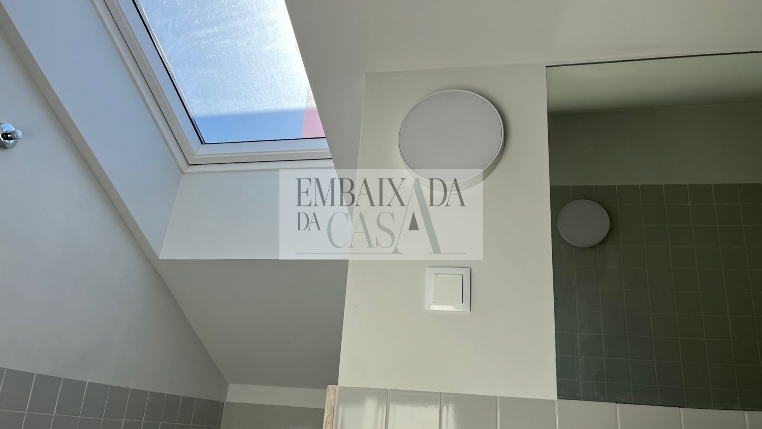 EMBAIXADA DA CASA | Apresenta apartamento T3 duplex no Areeiro, Av. Madrid, com fantástico terraço. Recentemente concluído, resulta da total recuperação (interior e exterior) de um prédio dos anos 50, preservando a sua traça exterior e o glamour das edificações da época. Apartamento duplex constituído por 3 quartos, dois dos quais em suite, um deles no piso superior. Dispõe de sala comum, de uma ampla cozinha e de um total de 3 casas de banho. Tem um generoso terraço com quase 100 m2, com vista fantástica 360 graus e privacidade, não estando muito próximo de nenhum prédio. O prédio tem um total de 5 andares e é servido por 2 elevadores novos, as traseiras dão para uma bonita e verdejante praceta que também é de estacionamento exclusivo para moradores. No piso térreo tem lojas com várias actividades em harmonia com a zona que fervilha com movimento e actividade. O Areeiro caracteriza-se por ser uma zona descontraída com apartamentos vintage em art déco e o popular Jardim Fernando Pessa, com trilhos calcetados que percorrem zonas de descanso florestadas e exibições de filmes ao ar livre no verão. Restaurantes informais, pastelarias e quiosques de gelados servem sobretudo famílias residentes e estudantes, enquanto os passageiros param para beber o café da manhã e cervejas depois do trabalho em redor do movimentado centro de transportes públicos na Estação Roma-Areeiro. ----------------------------- EMBAIXADA DA CASA | Presents 3 bedroom apartment in Areeiro, av. Madrid, with an amazing terrace. Already finished, it is the result of the total recovery (interior and exterior) of a building from the 50s, preserving its exterior design and the glamor of the buildings of the time. Duplex apartment consisting of 3 bedrooms, two of which are en suite, one on the upper floor. It has a common room, a good kitchen and a total of 3 bathrooms. It has a large terrace with almost 100 m2, with fantastic 360 degree views and privacy as it is not close to any building. The building has a total of 5 floors and is served by 2 elevators, the back faces a beautiful and green square that is also an exclusive parking for residents. On the ground floor there are shops with various activities in harmony with the area that buzzes with movement and activity. Areeiro is characterized by being a relaxed area with vintage art deco apartments and the popular Fernando Pessa Garden, with cobbled paths that run through forested rest areas and outdoor film screenings in summer. Casual restaurants, patisseries and ice cream kiosks cater mainly to resident families and students, while passengers stop for breakfast and beers after work around the busy public transport hub at Roma-Areeiro Station. The photographs are 3d projections of this project, illustrative of various fractions and typologies, not necessarily of this fraction.