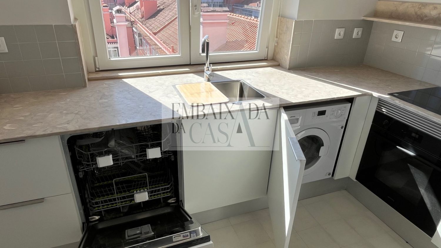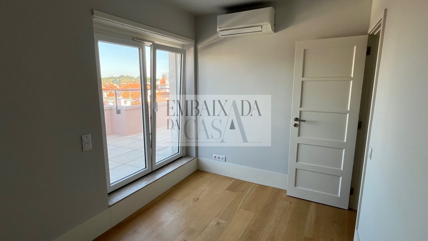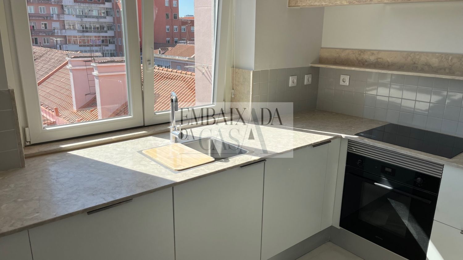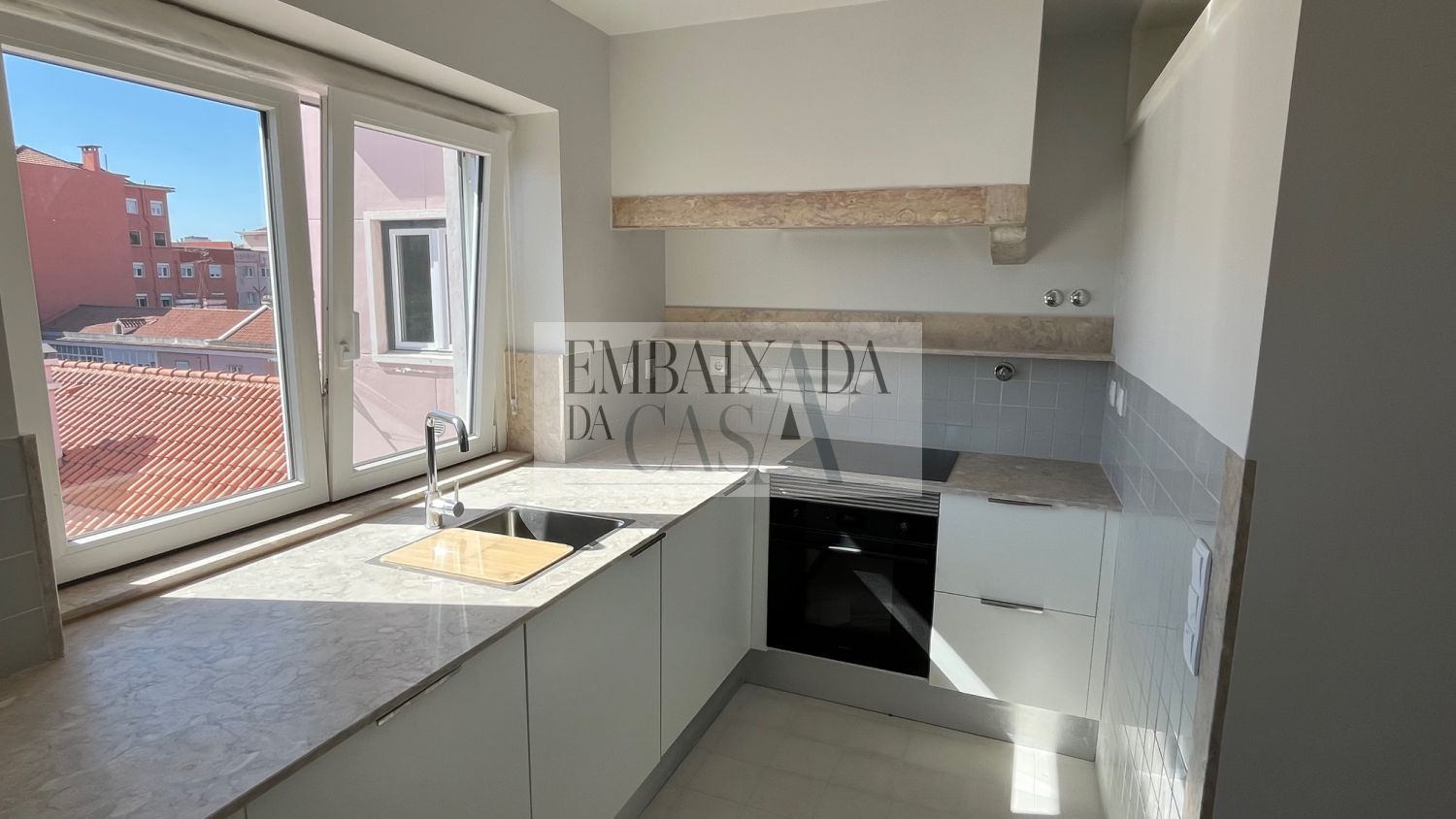 EMBAIXADA DA CASA | Apresenta apartamento T3 duplex no Areeiro, Av. Madrid, com fantástico terraço. Recentemente concluído, resulta da total recuperação (interior e exterior) de um prédio dos anos 50, preservando a sua traça exterior e o glamour das edificações da época. Apartamento duplex constituído por 3 quartos, dois dos quais em suite, um deles no piso superior. Dispõe de sala comum, de uma ampla cozinha e de um total de 3 casas de banho. Tem um generoso terraço com quase 100 m2, com vista fantástica 360 graus e privacidade, não estando muito próximo de nenhum prédio. O prédio tem um total de 5 andares e é servido por 2 elevadores novos, as traseiras dão para uma bonita e verdejante praceta que também é de estacionamento exclusivo para moradores. No piso térreo tem lojas com várias actividades em harmonia com a zona que fervilha com movimento e actividade. O Areeiro caracteriza-se por ser uma zona descontraída com apartamentos vintage em art déco e o popular Jardim Fernando Pessa, com trilhos calcetados que percorrem zonas de descanso florestadas e exibições de filmes ao ar livre no verão. Restaurantes informais, pastelarias e quiosques de gelados servem sobretudo famílias residentes e estudantes, enquanto os passageiros param para beber o café da manhã e cervejas depois do trabalho em redor do movimentado centro de transportes públicos na Estação Roma-Areeiro. ----------------------------- EMBAIXADA DA CASA | Presents 3 bedroom apartment in Areeiro, av. Madrid, with an amazing terrace. Already finished, it is the result of the total recovery (interior and exterior) of a building from the 50s, preserving its exterior design and the glamor of the buildings of the time. Duplex apartment consisting of 3 bedrooms, two of which are en suite, one on the upper floor. It has a common room, a good kitchen and a total of 3 bathrooms. It has a large terrace with almost 100 m2, with fantastic 360 degree views and privacy as it is not close to any building. The building has a total of 5 floors and is served by 2 elevators, the back faces a beautiful and green square that is also an exclusive parking for residents. On the ground floor there are shops with various activities in harmony with the area that buzzes with movement and activity. Areeiro is characterized by being a relaxed area with vintage art deco apartments and the popular Fernando Pessa Garden, with cobbled paths that run through forested rest areas and outdoor film screenings in summer. Casual restaurants, patisseries and ice cream kiosks cater mainly to resident families and students, while passengers stop for breakfast and beers after work around the busy public transport hub at Roma-Areeiro Station. The photographs are 3d projections of this project, illustrative of various fractions and typologies, not necessarily of this fraction.
