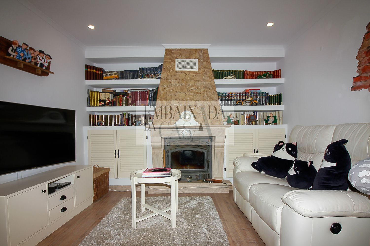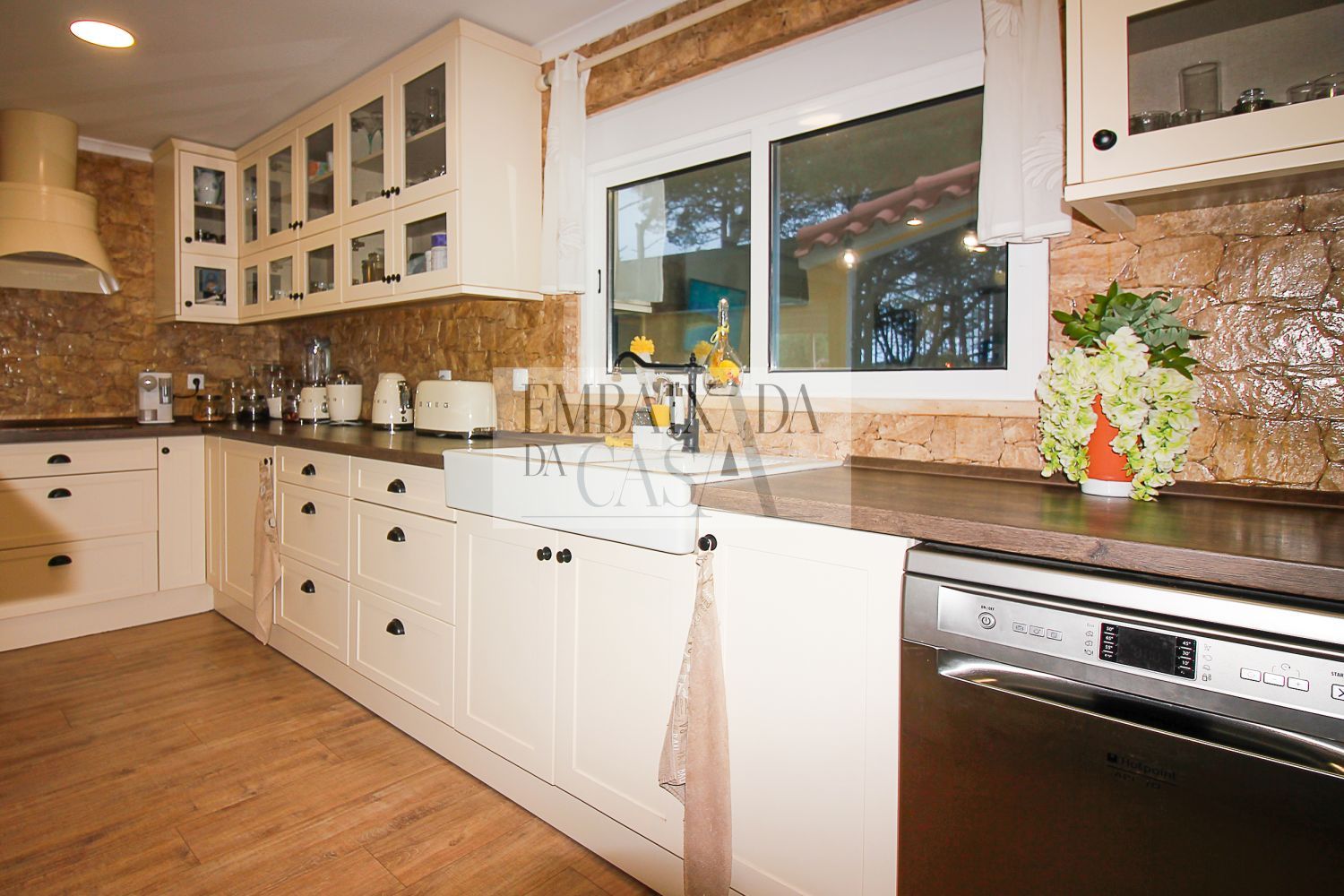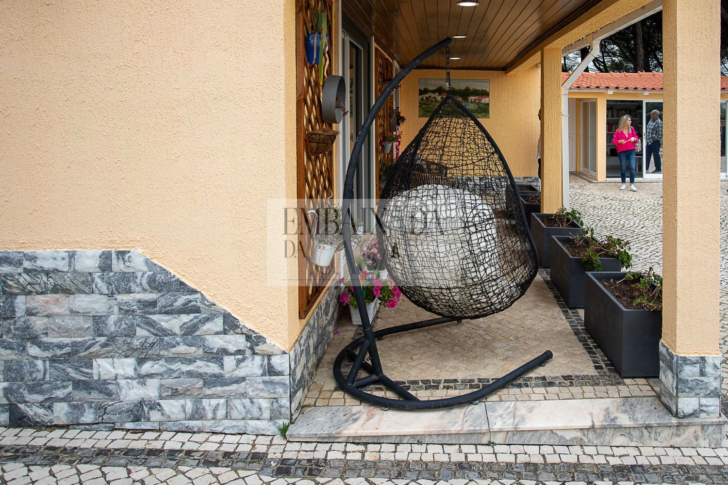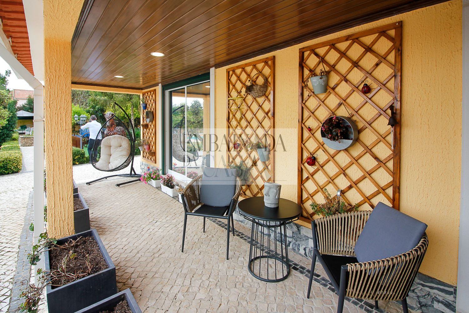 EMBAIXADA DA CASA | Apresenta Quinta c/ Moradia V3+2 e piscina, estando incluído mais um terreno rústico, com 840m2 em anexo. A quinta é constituída por a casa principal, jardim muito bem arranjado com diversas árvores, recantos românticos e passeios, vários anexos para garagem, biblioteca, zona de refeições no exterior coberta, piscina com 8m x 4m. O terreno tem uma área total de 1.651 m² : A moradia tem uma área de implantação: 346,8 m², com uma área bruta de construção de 341,1 m² e em áreas exteriores em anexos tem: 123,1 m². A moradia é constituída por: - PISO 0: Sala + cozinha em "open space" totalmente equipada com 48,7m2, mais lavandaria. Outra sala de estar com 17,75m2 com lareira com recuperador de calor, mais 3 Quartos, sendo um em Suíte 18,7m² com closet , casa de banho da suite com 3,9m² Base de duche, sanita e lavatório, aquecedor de toalhas; 2 quartos de 9,03m² e 9,15m², ambos c/ roupeiro; Uma casa de banho completa com 10,75m², lavatório duplo, banheira de hidromassagem, cabine hidromassagem, aquecedor de toalhas. - PISO 1: Salão "Spa" com 57,2m² com closet, Terraço fechado em marquise 20m²; casa de banho de serviço com 6,5m² com Lavatório, banheira de hidromassagem, cabine de hidromassagem, aquecedor de toalhas. Os aquecimentos elétricos individuais; estores elétricos, geridos por telefone; Sistema de Vídeo vigilância. - Exterior: Piscina de transbordo com jacuzzi, água aquecida e iluminada; Jardim com rega automática programada; Biblioteca + WC "Telheiro" 21,7m²; Sala 36,8m² "Arrumos" ; Garagem para 2 carros + Sala com 69,4m²; Arrumos, Canil com 7,2m²; Cozinha equipada de apoio à piscina 19,55m²; Pérgola; WC com Sauna 12,9m²; Casa de motor 4 m²; Furo. Portões automáticos de acesso aos veículos, Calçada Portuguesa nas zonas de circulação. Venda é feita em conjunto com lote de terreno rústico com a área total de 840m², junto à Quinta. Localizada perto de Sintra, com paisagens deslumbrantes, com vista para a Serra de Sintra, muitos bons acessos tanto para Lisboa como para todo o tipo de comércio, tanto de supermercados como de comércio local. As praias da zona de Sintra a Ericeira estão logo ali em escassos 10 minutos de carro. -------------------------------------------------- EMBAIXADA DA CASA | Presents Farm with 3+2 bedroom villa with swimming pool, including another rustic plot of land, with 840m2 attached. The farm consists of the main house, a very well-organized garden with several trees, romantic corners and walks, several outbuildings for a garage, library, covered outdoor dining area, swimming pool measuring 8m x 4m. The land has a total area of 1,651 m²: The house has a footprint: 346.8 m², with a gross construction area of 341.1 m² and in exterior areas in annexes it has: 123.1 m². The house consists of: - FLOOR 0: Living room + kitchen in "open space" fully equipped with 48.7 m2, plus laundry. Another living room with 17.75m2 with fireplace with stove, 3 more bedrooms, one of which is a 18.7m² suite with closet, bathroom in the suite with 3.9m² shower tray, toilet and sink, heated towel rail; 2 bedrooms measuring 9.03m² and 9.15m², both with wardrobes; A complete bathroom measuring 10.75 m², double sink, hydromassage bathtub, hydromassage cabin, towel warmer. - 1st FLOOR: "Spa" room with 57.2 m² with closet, 20 m² enclosed terrace in awning; service bathroom measuring 6.5 m² with sink, hydromassage bathtub, hydromassage cabin, towel warmer. Individual electric heaters; electric blinds, managed by telephone; Video surveillance system. - OUTSIDE: An overflow swimming pool with jacuzzi, heated and illuminated water; Garden with programmed automatic irrigation; Library + WC "Telheiro" 21.7m²; Room 36.8m² "Storage room"; Garage for 2 cars + Living room with 69.4m²; Storage, Kennel with 7.2m²; Equipped kitchen supporting the pool 19.55m²; Pergola; WC with Sauna 12.9m²; Motor house 4 m²; Hole. Automatic vehicle access gates, Portuguese sidewalk in circulation areas. Sale is made together with a plot of rustic land with a total area of 840m², next to the Quinta. Located near Sintra, with stunning landscapes, overlooking the Serra de Sintra, many good accesses to both Lisbon and all types of commerce, both supermarkets and local commerce. The beaches in the Sintra to Ericeira area are just a 10-minute drive away.