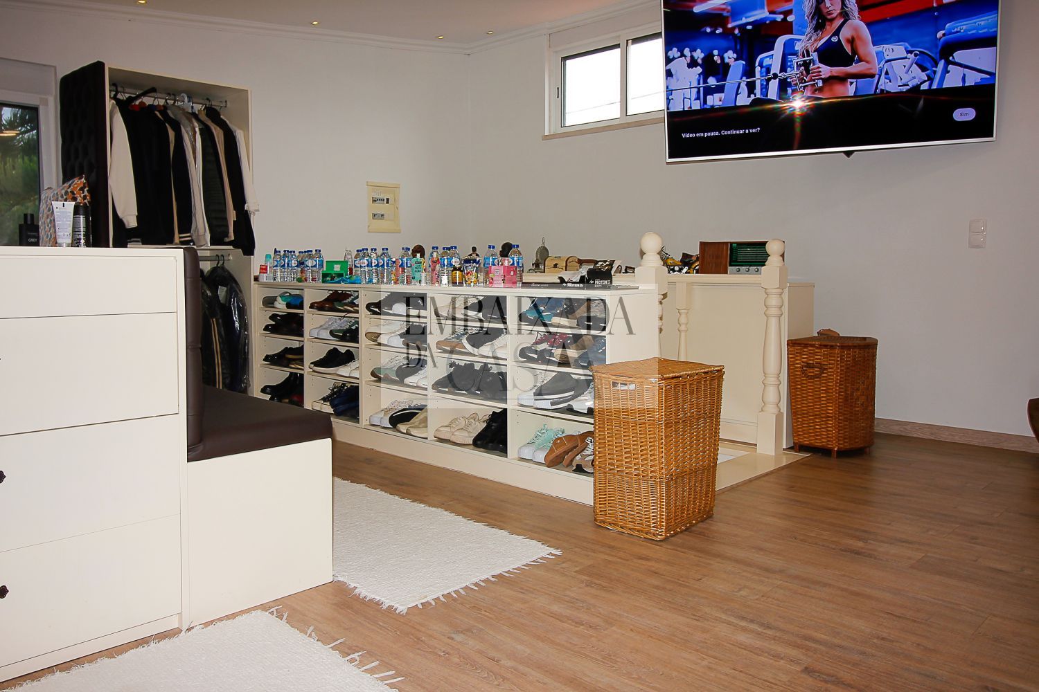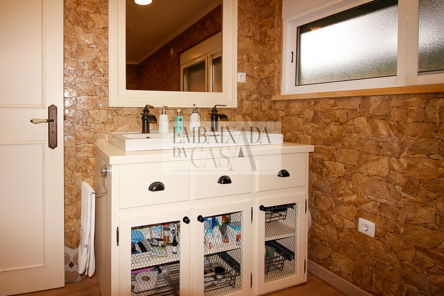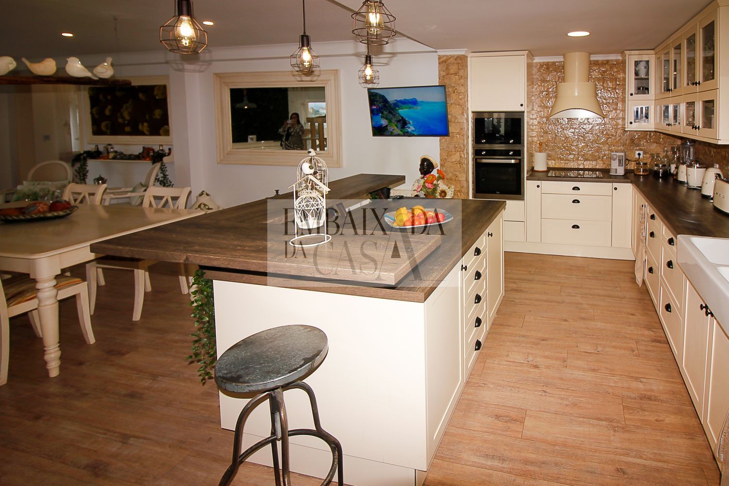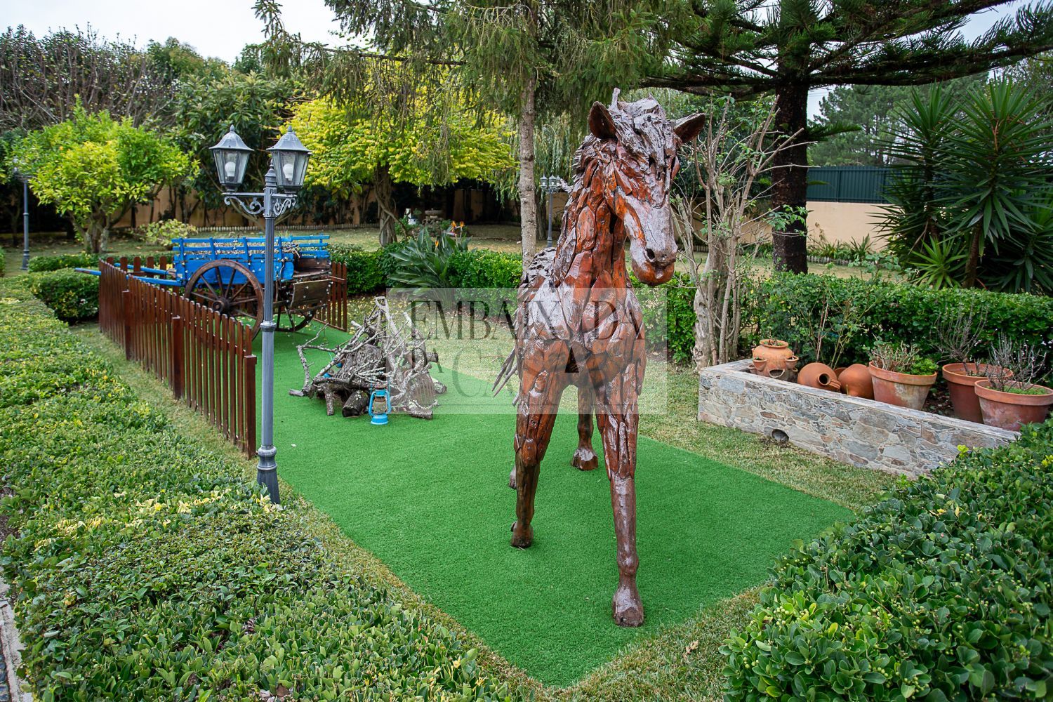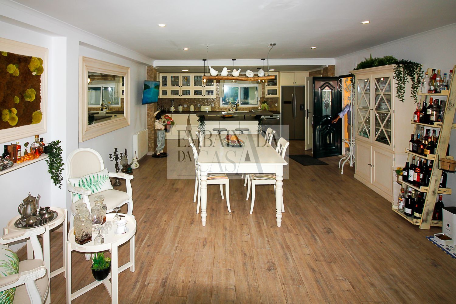 EMBAIXADA DA CASA | Apresenta Quinta c/ Moradia V3+2 e piscina, estando incluído mais um terreno rústico, com 840m2 em anexo. A quinta é constituída por a casa principal, jardim muito bem arranjado com diversas árvores, recantos românticos e passeios, vários anexos para garagem, biblioteca, zona de refeições no exterior coberta, piscina com 8m x 4m. O terreno tem uma área total de 1.651 m² : A moradia tem uma área de implantação: 346,8 m², com uma área bruta de construção de 341,1 m² e em áreas exteriores em anexos tem: 123,1 m². A moradia é constituída por: - PISO 0: Sala + cozinha em "open space" totalmente equipada com 48,7m2, mais lavandaria. Outra sala de estar com 17,75m2 com lareira com recuperador de calor, mais 3 Quartos, sendo um em Suíte 18,7m² com closet , casa de banho da suite com 3,9m² Base de duche, sanita e lavatório, aquecedor de toalhas; 2 quartos de 9,03m² e 9,15m², ambos c/ roupeiro; Uma casa de banho completa com 10,75m², lavatório duplo, banheira de hidromassagem, cabine hidromassagem, aquecedor de toalhas. - PISO 1: Salão "Spa" com 57,2m² com closet, Terraço fechado em marquise 20m²; casa de banho de serviço com 6,5m² com Lavatório, banheira de hidromassagem, cabine de hidromassagem, aquecedor de toalhas. Os aquecimentos elétricos individuais; estores elétricos, geridos por telefone; Sistema de Vídeo vigilância. - Exterior: Piscina de transbordo com jacuzzi, água aquecida e iluminada; Jardim com rega automática programada; Biblioteca + WC "Telheiro" 21,7m²; Sala 36,8m² "Arrumos" ; Garagem para 2 carros + Sala com 69,4m²; Arrumos, Canil com 7,2m²; Cozinha equipada de apoio à piscina 19,55m²; Pérgola; WC com Sauna 12,9m²; Casa de motor 4 m²; Furo. Portões automáticos de acesso aos veículos, Calçada Portuguesa nas zonas de circulação. Venda é feita em conjunto com lote de terreno rústico com a área total de 840m², junto à Quinta. Localizada perto de Sintra, com paisagens deslumbrantes, com vista para a Serra de Sintra, muitos bons acessos tanto para Lisboa como para todo o tipo de comércio, tanto de supermercados como de comércio local. As praias da zona de Sintra a Ericeira estão logo ali em escassos 10 minutos de carro. -------------------------------------------------- EMBAIXADA DA CASA | Presents Farm with 3+2 bedroom villa with swimming pool, including another rustic plot of land, with 840m2 attached. The farm consists of the main house, a very well-organized garden with several trees, romantic corners and walks, several outbuildings for a garage, library, covered outdoor dining area, swimming pool measuring 8m x 4m. The land has a total area of 1,651 m²: The house has a footprint: 346.8 m², with a gross construction area of 341.1 m² and in exterior areas in annexes it has: 123.1 m². The house consists of: - FLOOR 0: Living room + kitchen in "open space" fully equipped with 48.7 m2, plus laundry. Another living room with 17.75m2 with fireplace with stove, 3 more bedrooms, one of which is a 18.7m² suite with closet, bathroom in the suite with 3.9m² shower tray, toilet and sink, heated towel rail; 2 bedrooms measuring 9.03m² and 9.15m², both with wardrobes; A complete bathroom measuring 10.75 m², double sink, hydromassage bathtub, hydromassage cabin, towel warmer. - 1st FLOOR: "Spa" room with 57.2 m² with closet, 20 m² enclosed terrace in awning; service bathroom measuring 6.5 m² with sink, hydromassage bathtub, hydromassage cabin, towel warmer. Individual electric heaters; electric blinds, managed by telephone; Video surveillance system. - OUTSIDE: An overflow swimming pool with jacuzzi, heated and illuminated water; Garden with programmed automatic irrigation; Library + WC "Telheiro" 21.7m²; Room 36.8m² "Storage room"; Garage for 2 cars + Living room with 69.4m²; Storage, Kennel with 7.2m²; Equipped kitchen supporting the pool 19.55m²; Pergola; WC with Sauna 12.9m²; Motor house 4 m²; Hole. Automatic vehicle access gates, Portuguese sidewalk in circulation areas. Sale is made together with a plot of rustic land with a total area of 840m², next to the Quinta. Located near Sintra, with stunning landscapes, overlooking the Serra de Sintra, many good accesses to both Lisbon and all types of commerce, both supermarkets and local commerce. The beaches in the Sintra to Ericeira area are just a 10-minute drive away.