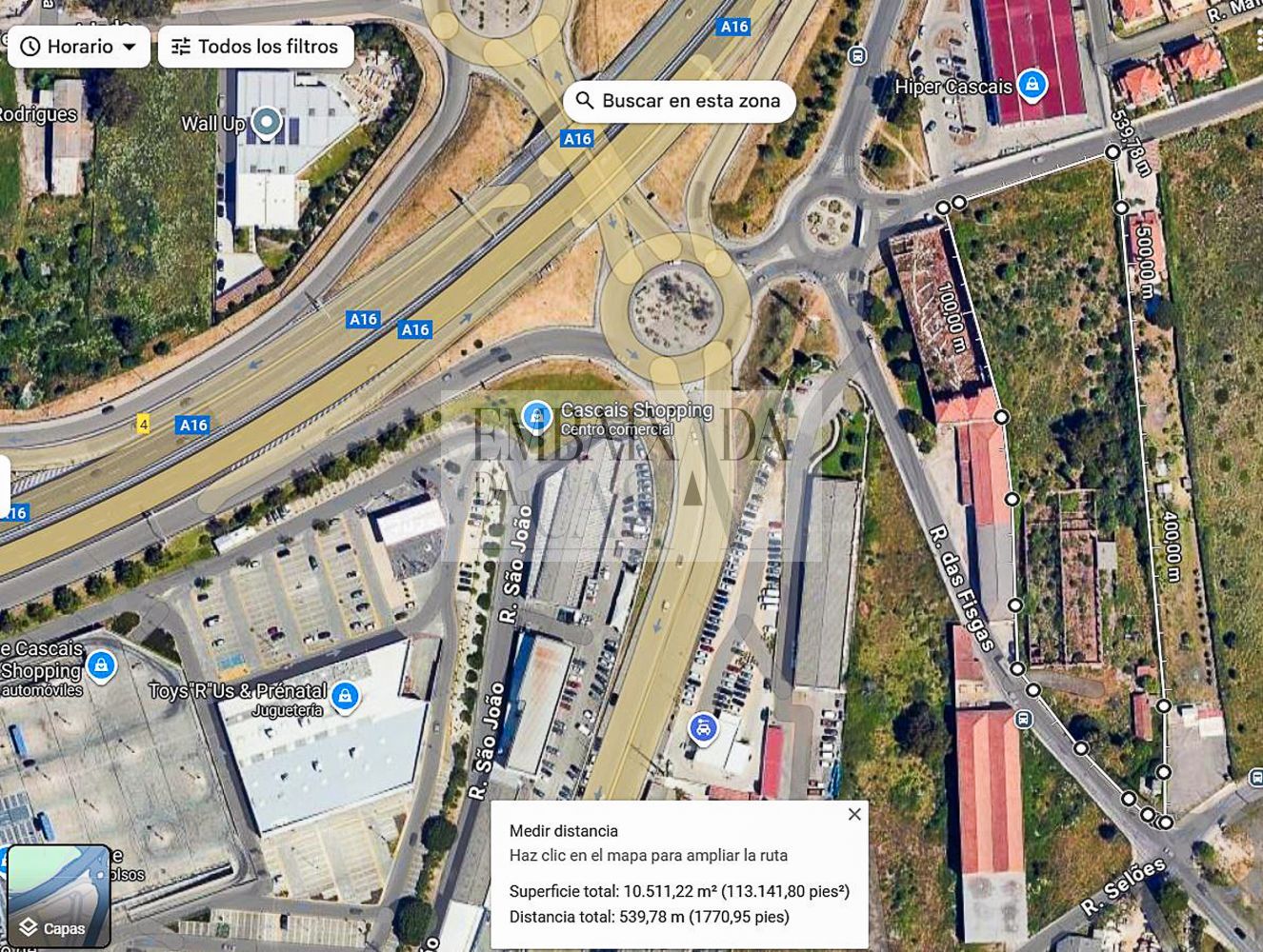 EMBAIXADA DA CASA | Apresenta terreno com 10.680m2, propriedade da antiga cerâmica de Alcoitão, na freguesia de Alcabideche, concelho de Cascais. Classificado como Terreno Urbano e com autorização de construção de edifício de comércio, industria ou serviços, não sendo permitindo habitação. Localizado muito perto de outras superfícies comerciais de referência, tais como CascaisShoping e parques industriais, servido por uma excelente rede de estradas e autoestradas, fica a 100m do acesso a A16, que liga Cascais a Sintra e circunda toda a região de Lisboa. ------------- EMBAIXADA DA CASA | presents 10,680m2 plot of land, owned by the former ceramics factory of Alcoitão, in the parish of Alcabideche, municipality of Cascais. Classified as urban land, with permission to build a commercial, industrial, or service building, residential use is not permitted. Located very close to other major commercial areas, such as CascaisShoping and industrial parks, it is served by an excellent road and highway network and is 100m from the access to the A16 highway, which connects Cascais to Sintra and surrounds the entire Lisbon region.